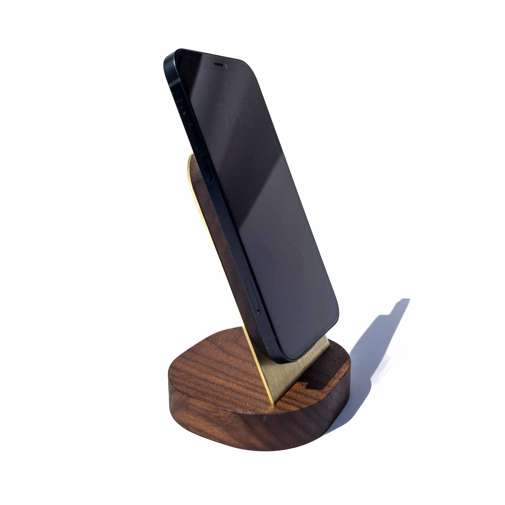 Mag Charging Stand - Walnut/Brass with Weighted Base