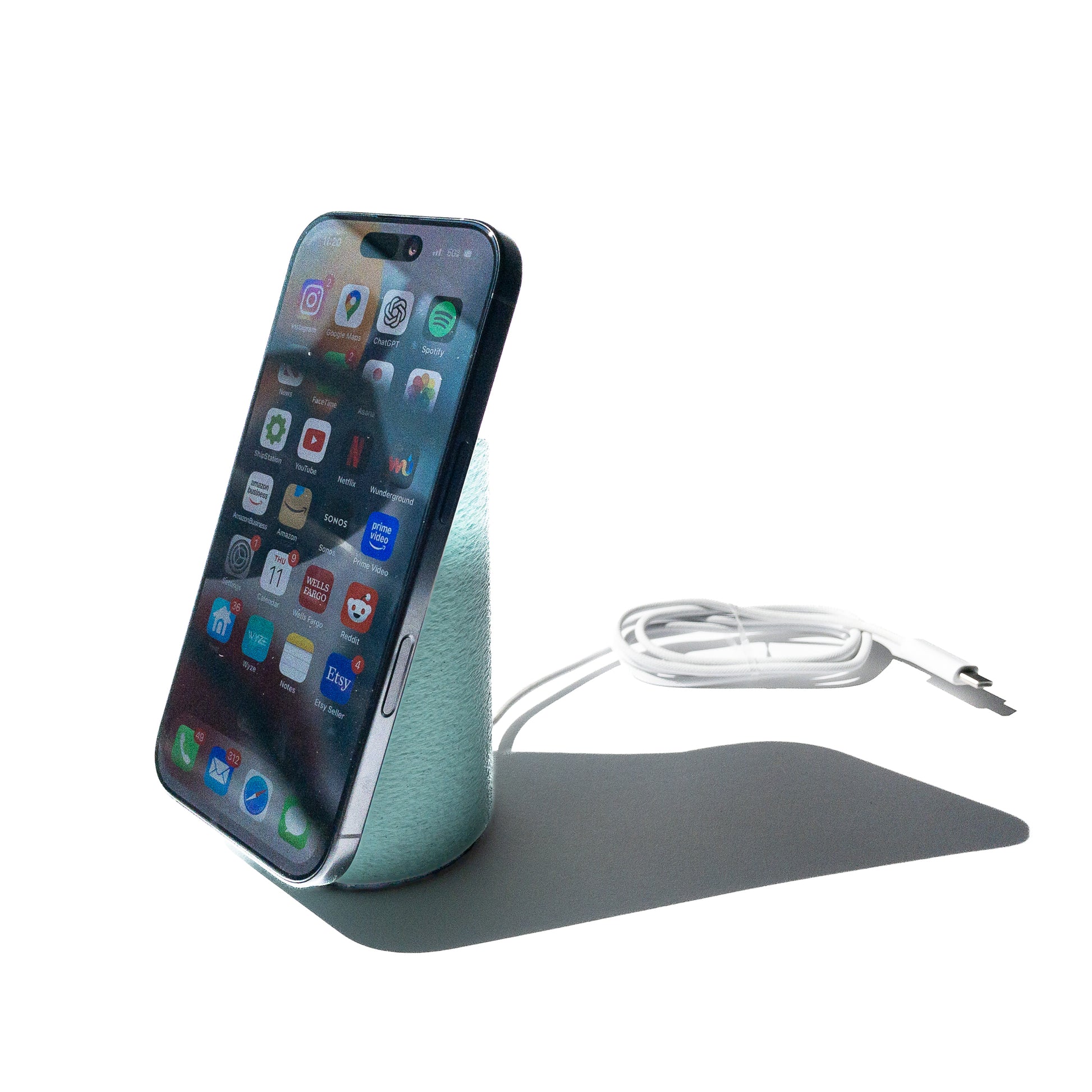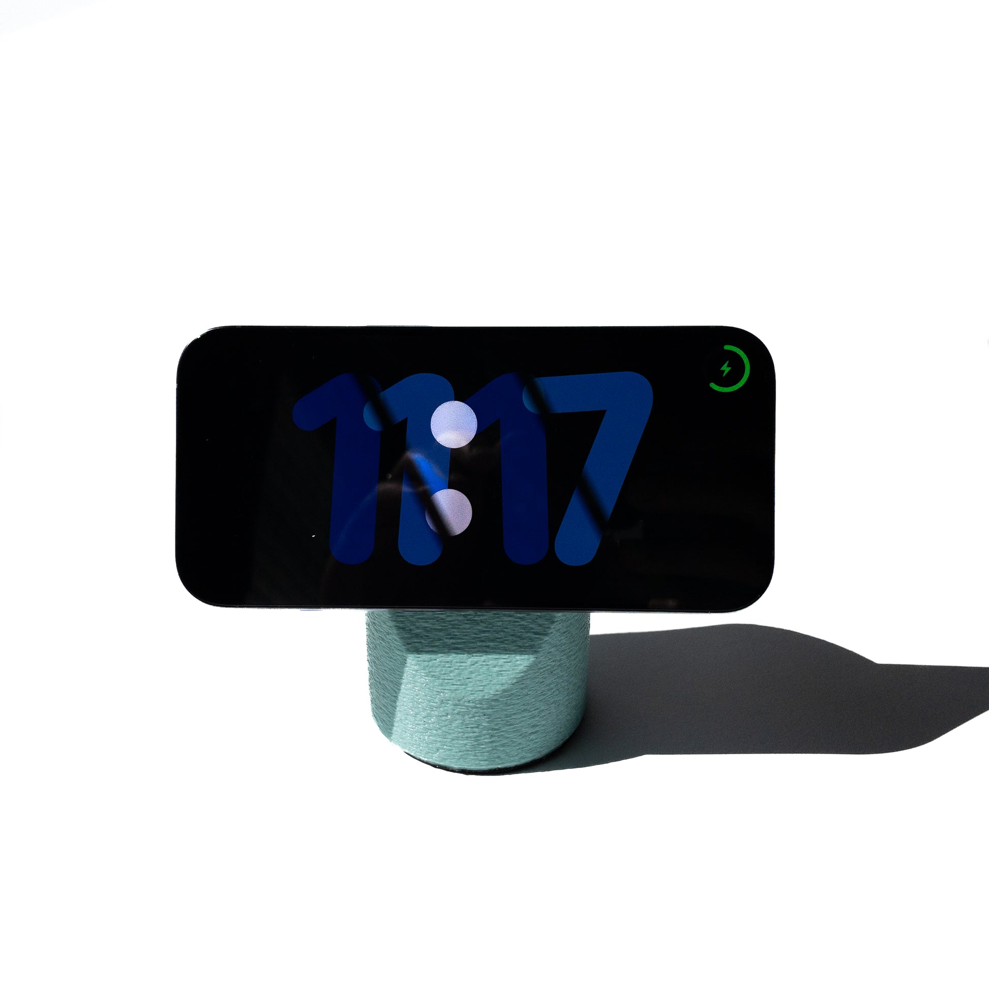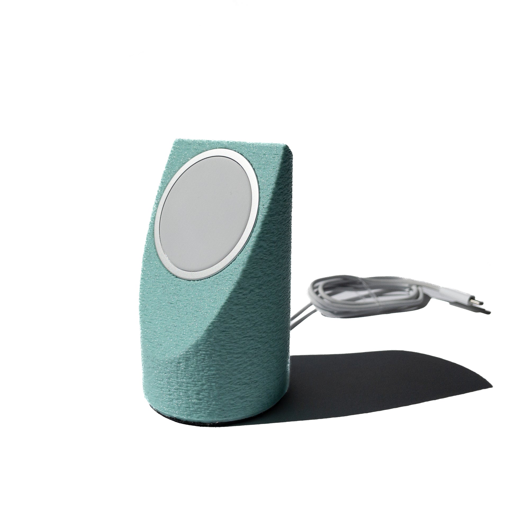 Modern design for everyday charging. This minimalist MagSafe stand transforms your iPhone charger into a sleek, sculptural accent for your home or office. Designed to fit the Apple MagSafe charging puck, it keeps your phone upright, charged, and ready — whether you’re working, relaxing, or winding down at night.