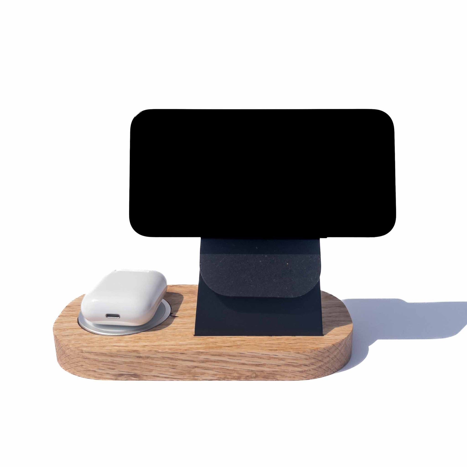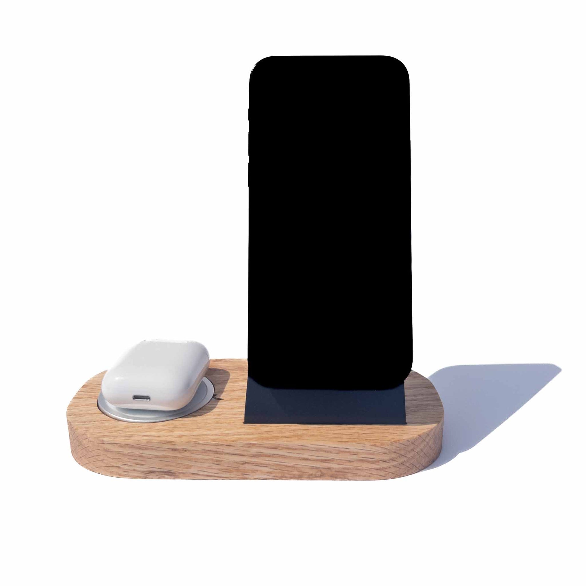 Crafted from beautiful American Oak and powder coated steel, this sleek family of chargers will elevate your charging experience. Available in multiple configurations to wirelessly charge 1-3 devices simultaneously.