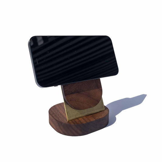 Mag Charging Stand - Walnut/Brass with Weighted Base