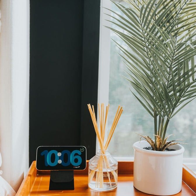 • Great for using iPhone's Night Stand mode on the bedside table.