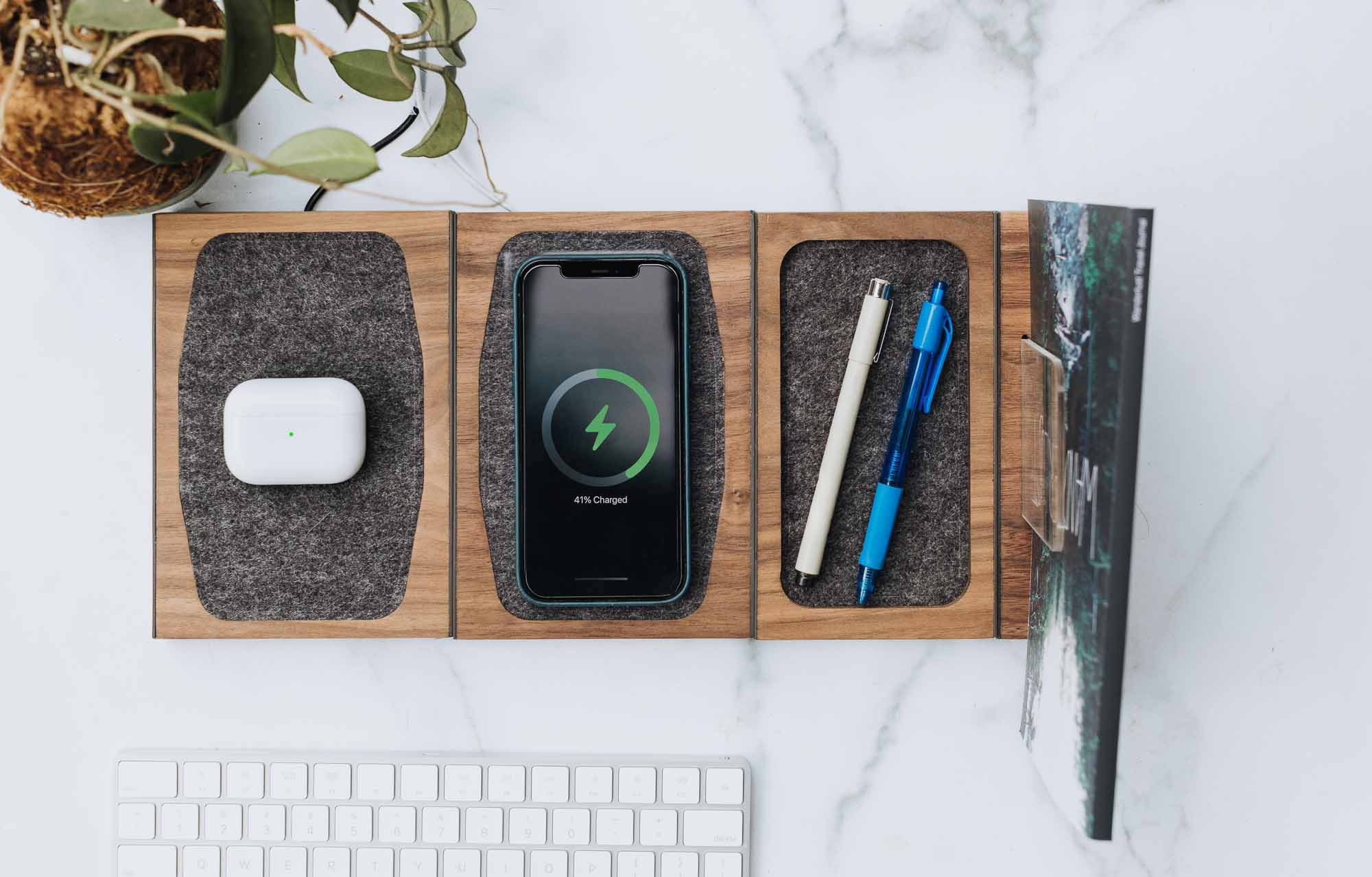 Rich walnut combines with soft vegan felt to create a charging and...